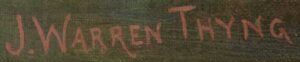 Thyng produced pen and ink sketches, and painted in both oils and watercolors. He studied under George Loring Brown in Boston, received instruction from Frederic Church, George Inness and William Hart and studied classical art at the National Academy of Design in NY.