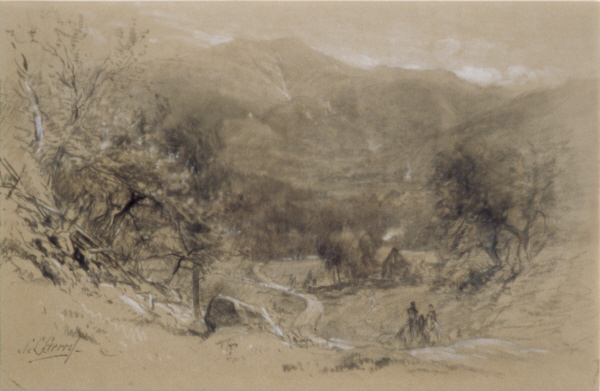 Mount Lafayette from Sunset Hill House, Sugar Hill by Samuel Lancaster Gerry Charcoal on tan paper, 13 x 20 inches Signed lower left: S L Gerry Links Lafayette, Gerry, Gerry Gallery